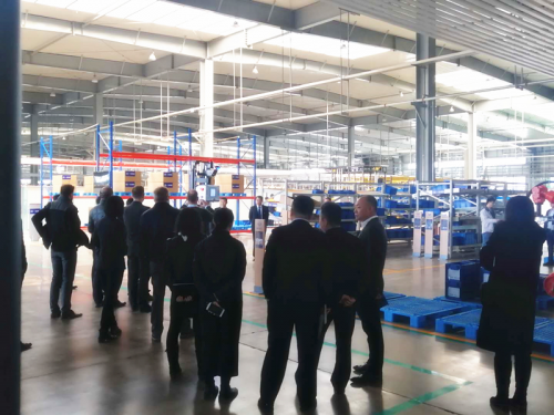 圖為一汽及大眾汽車的領導參觀Geek+無人叉車作業(yè)