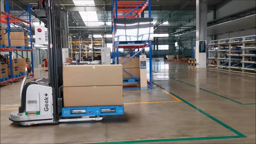 Geek+無人叉車在長春一汽智能工廠內運行作業(yè)